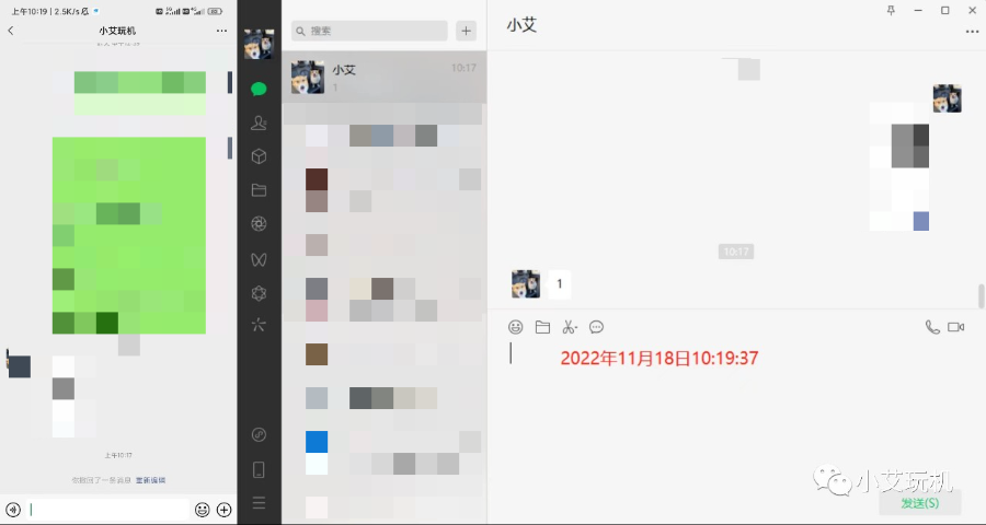 消息在10:17分发送的,立即撤回后,安装防撤回补丁后,咱们电脑端一直是可以看到的。